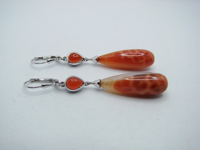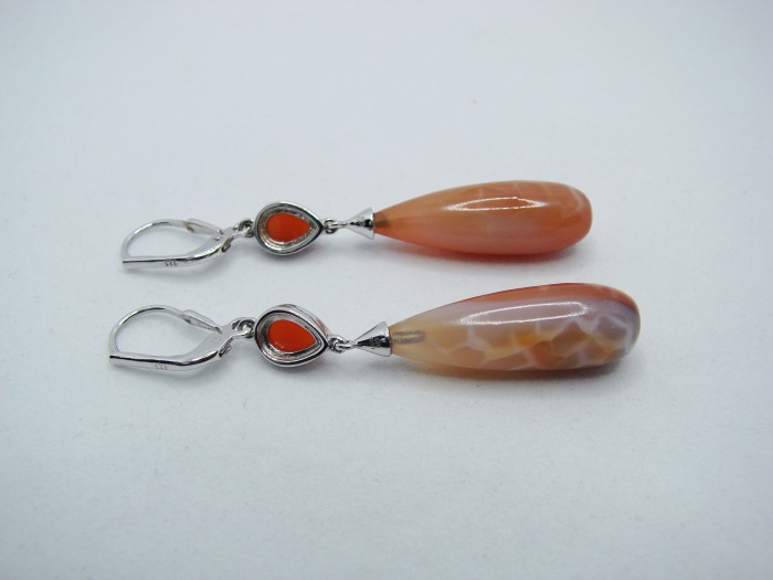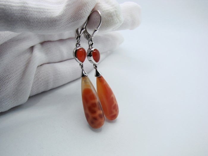 925 cercei argint cu agat de foc extrem de frumos 29 x10 mm