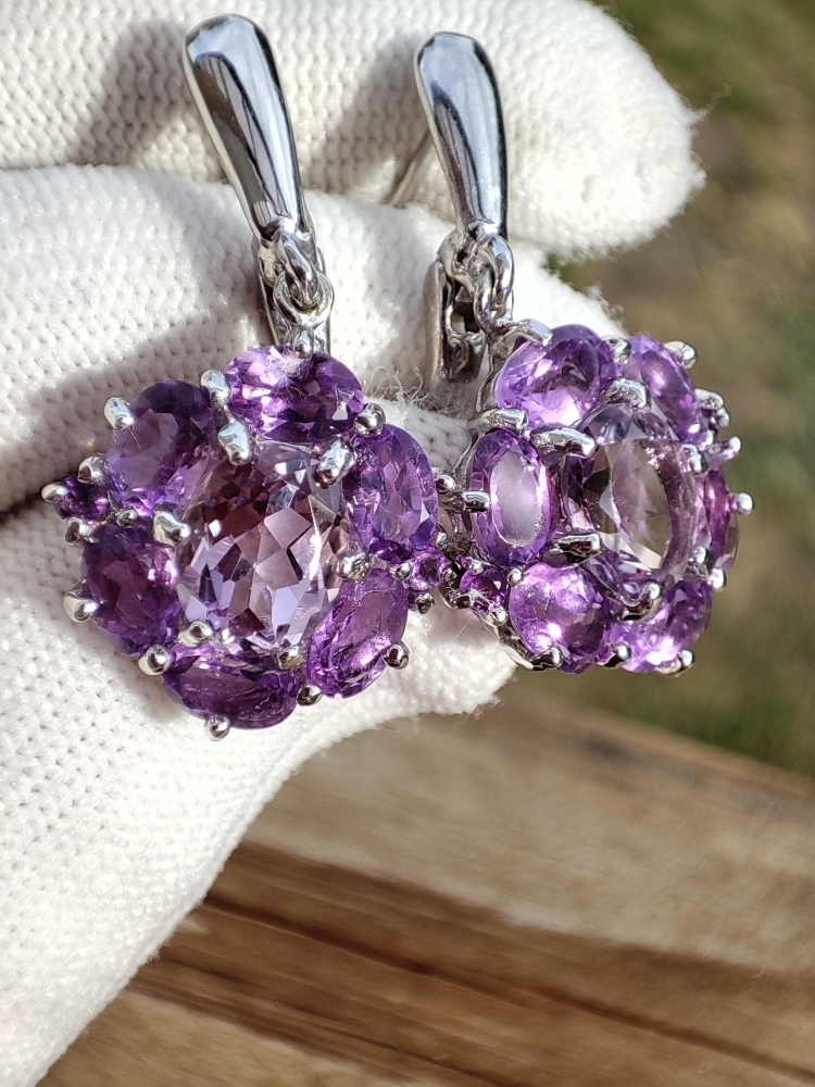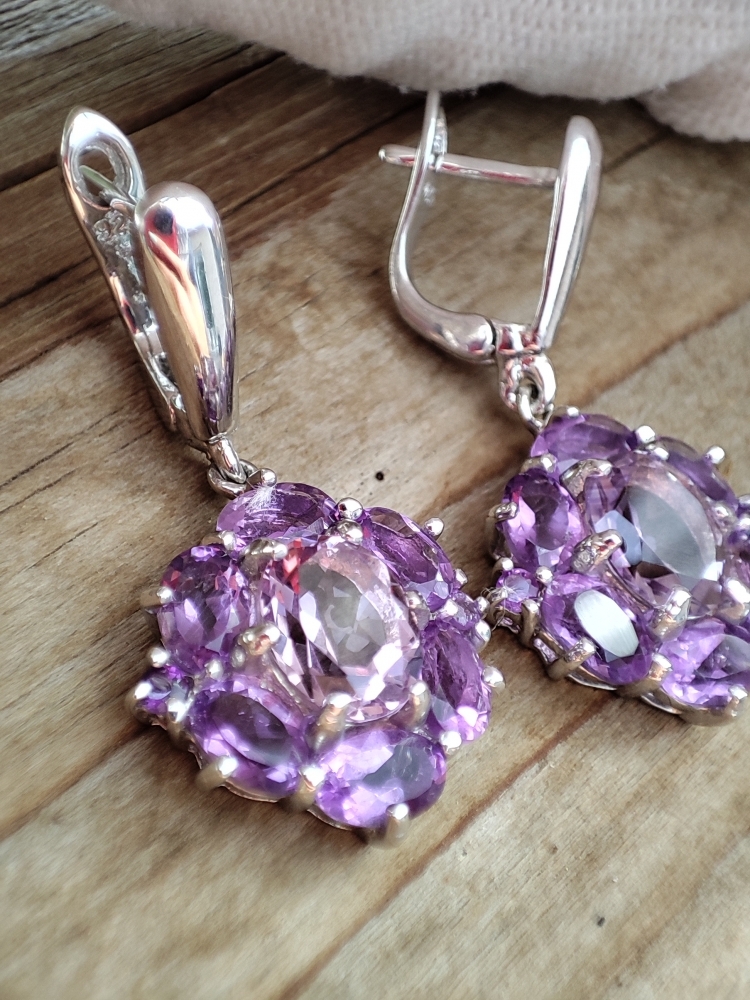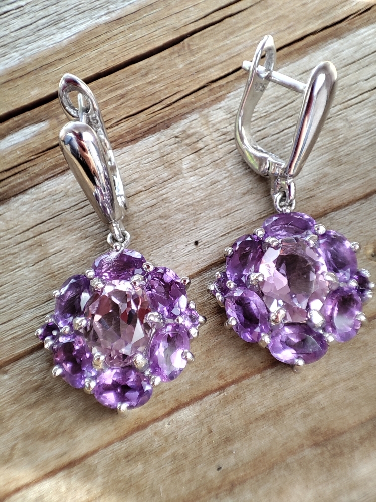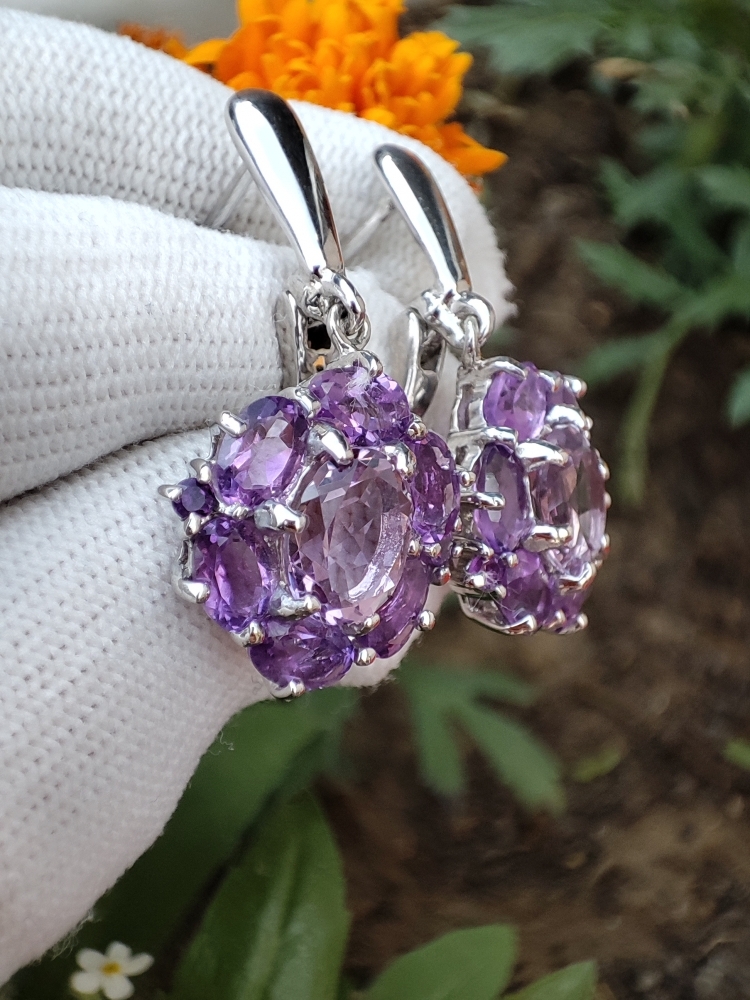 Cercei eleganti cu ametist natural 9 x 7 mm