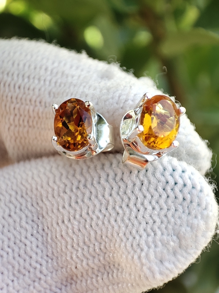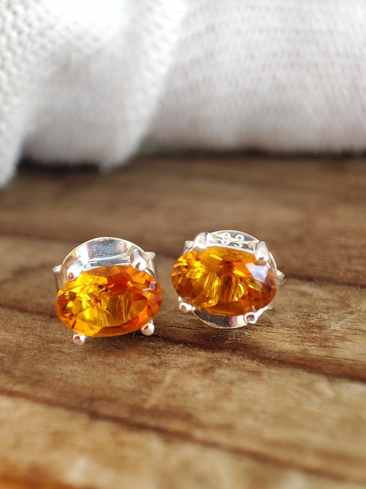 Cercei argint tip stud cu citrin natural 6 x 4 mm