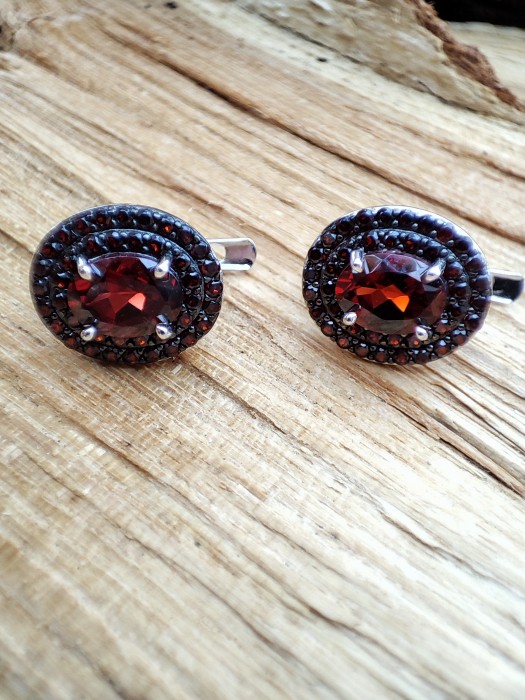 CERCEI ARGINT CU GRANATE NATURALE MOZAMBIQUE