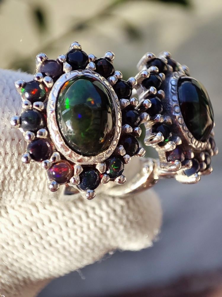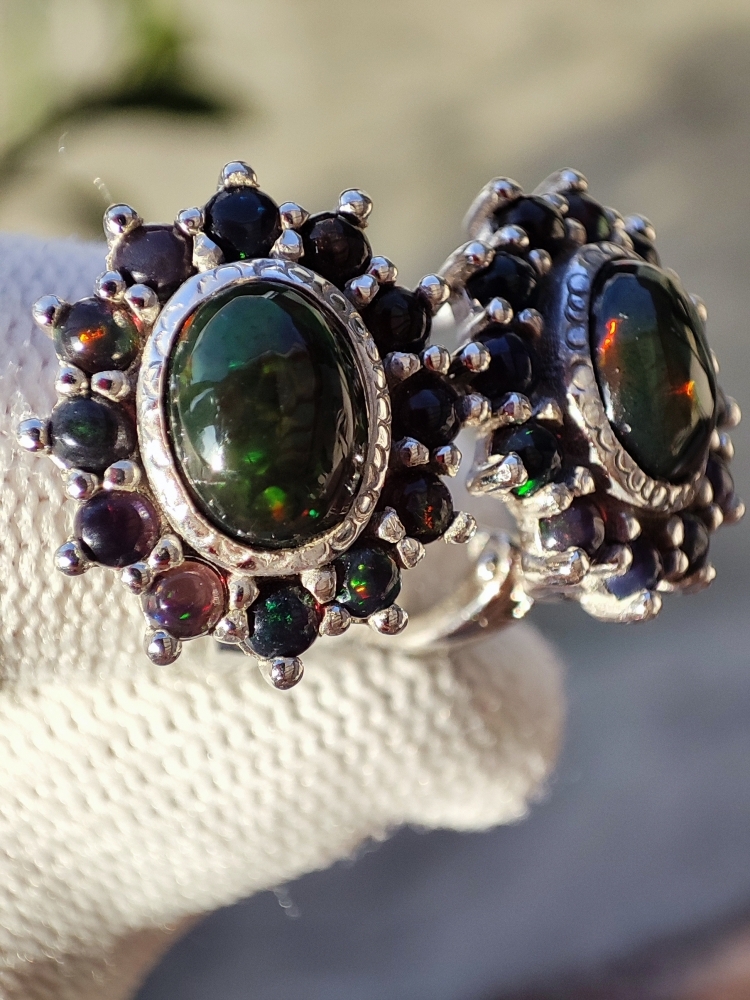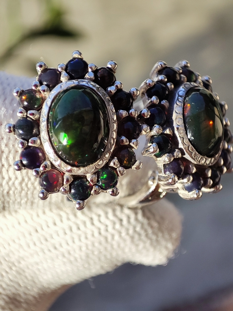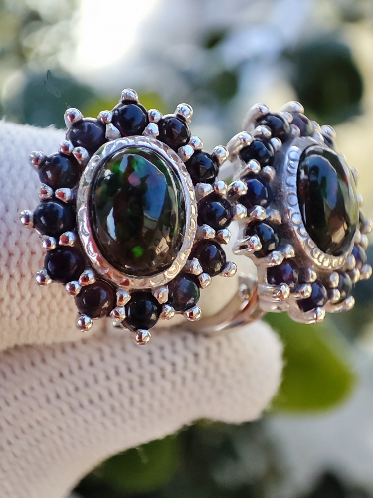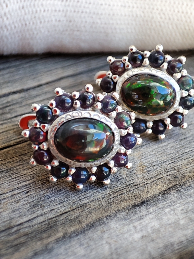 Cercei argint cu opal negru Etiopian 8 x 6 mm