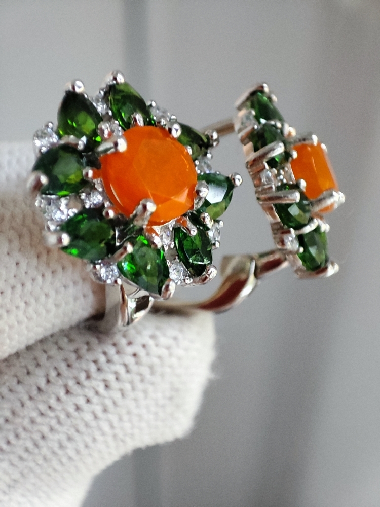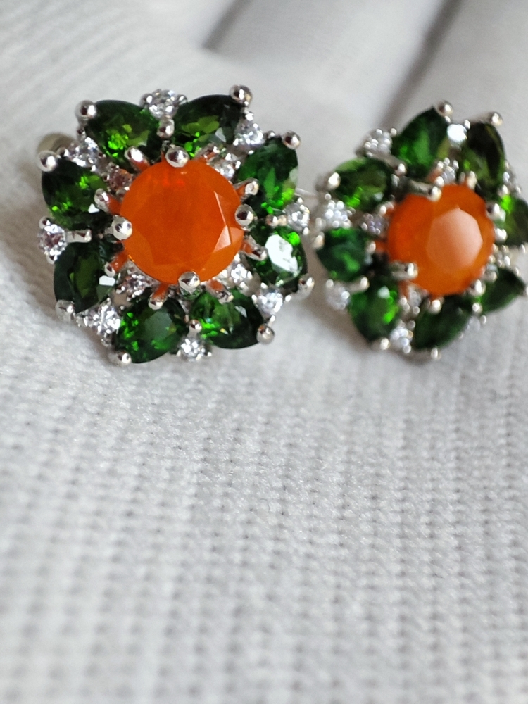 anturaj diopside naturale 4 x 3 mm si cubic zirconia 1 mm