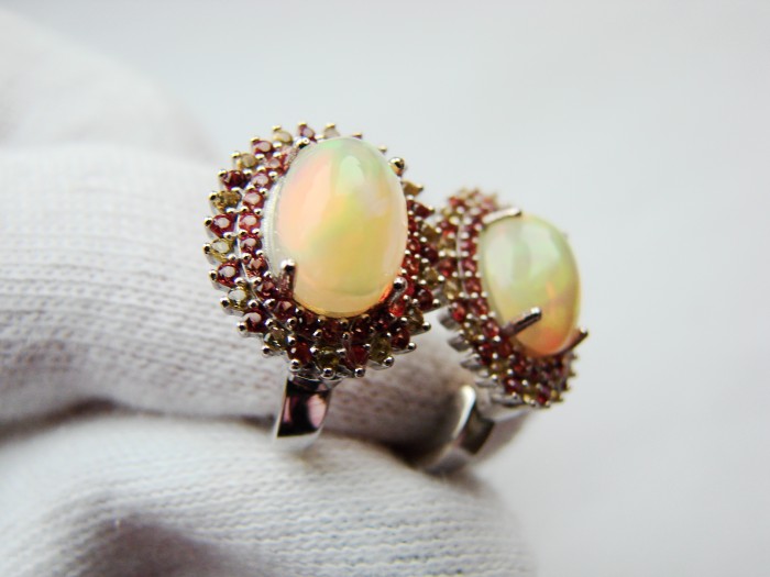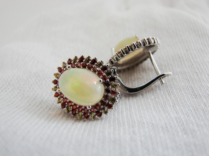CERCEI ARGINT CU OPAL ETIOPIAN MULTICOLOR 9 X 7 MM