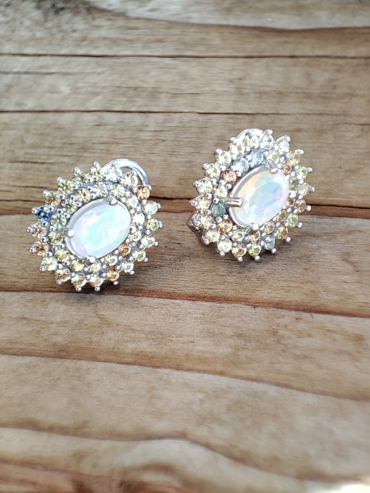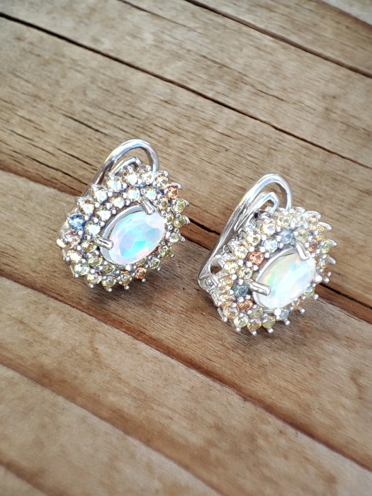 Cercei argint superbi cu opal multicolor oval caboshon 7 x 5 mm, Etiopian