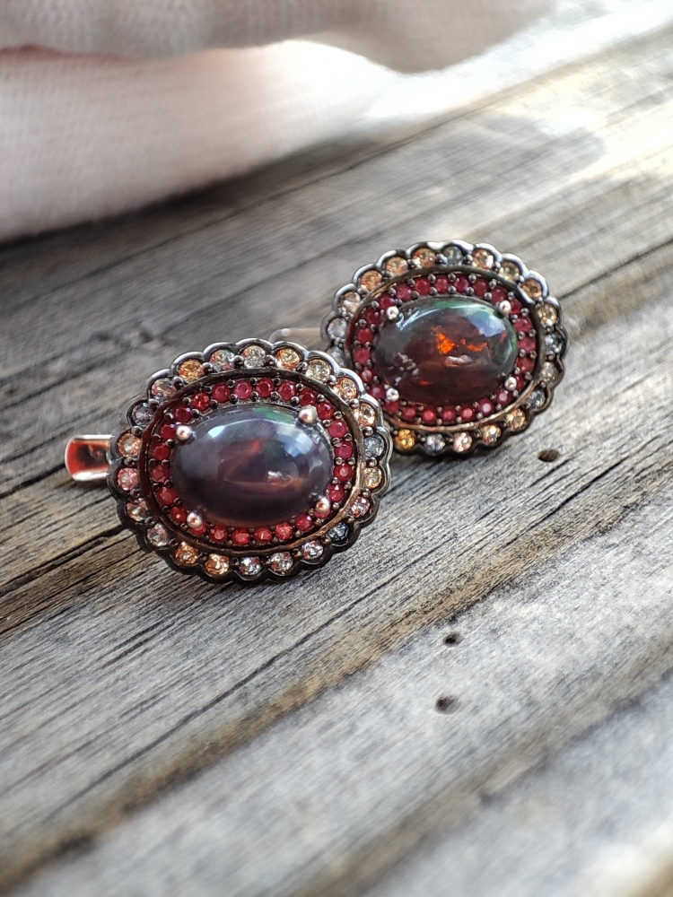 Cercei argint cu opal negru Etiopian natural oval caboshon 8 x 6 mm