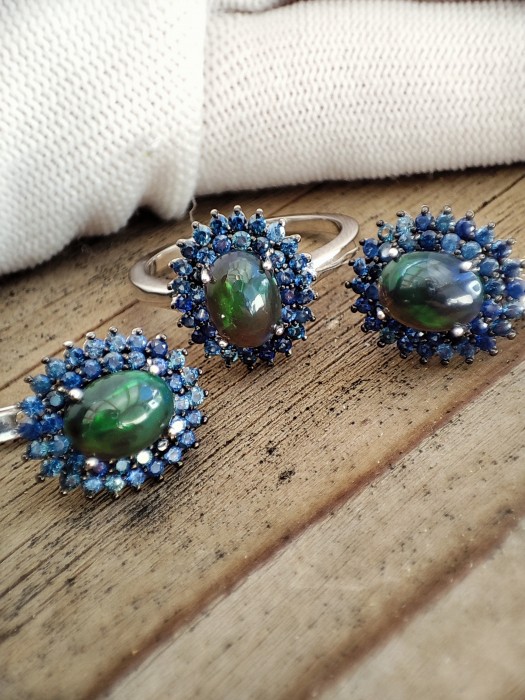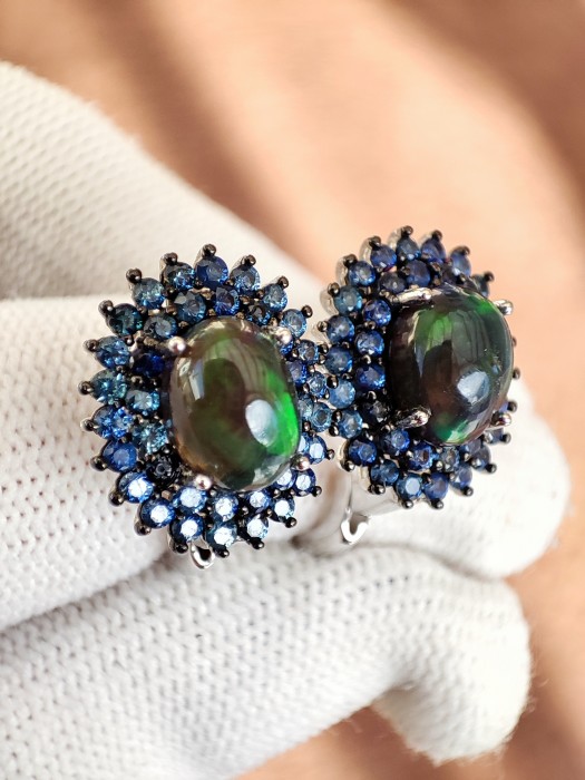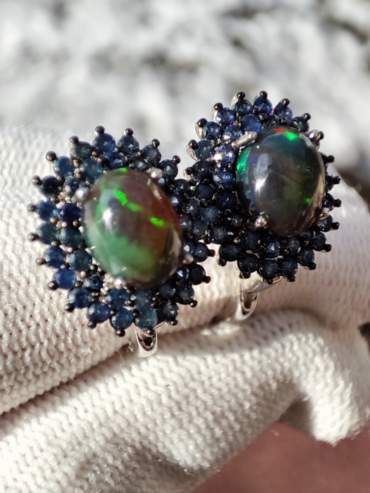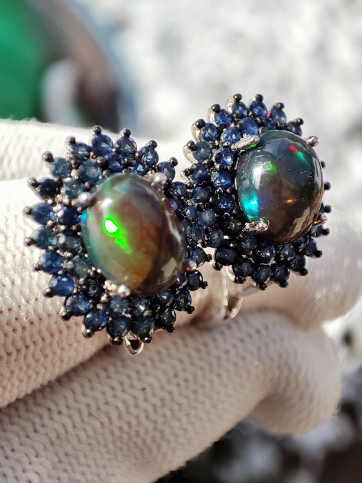 CERCEI ATRACTIVI CU OPALNEGRU ETIOPIAN OVAL CABOSHON 8 X 6 MM, NATURAL CU REFLEXIE FOARTE FRUMOASA