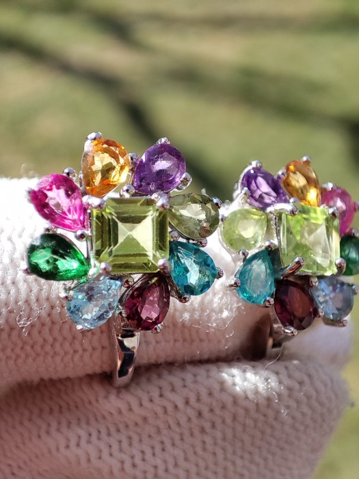 anturaj ametist, citrin, topaz verde,roz si albastru de paraiba granat 4 x 3 mm