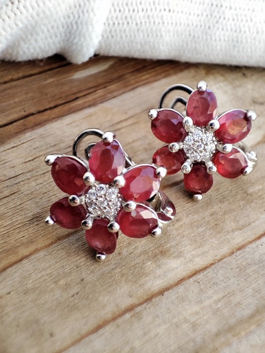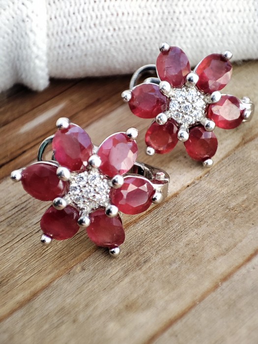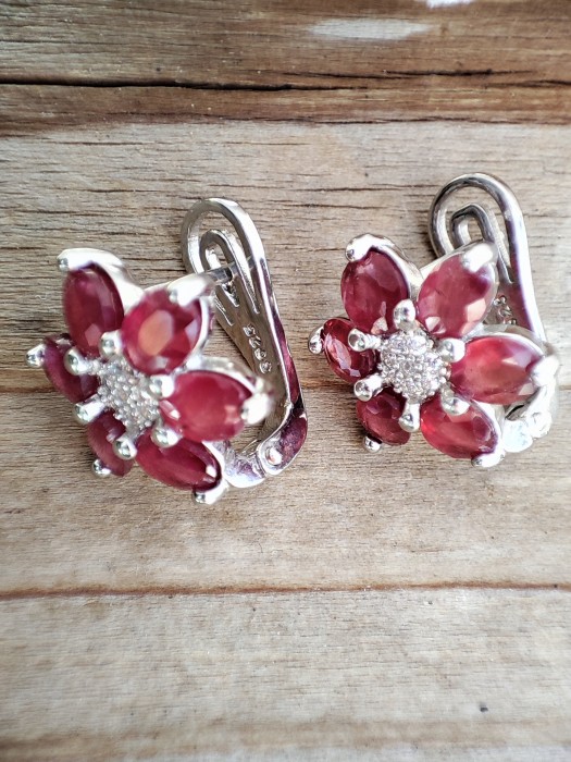 Cercei argint draguti cu rubin natural 5 x 4 mm