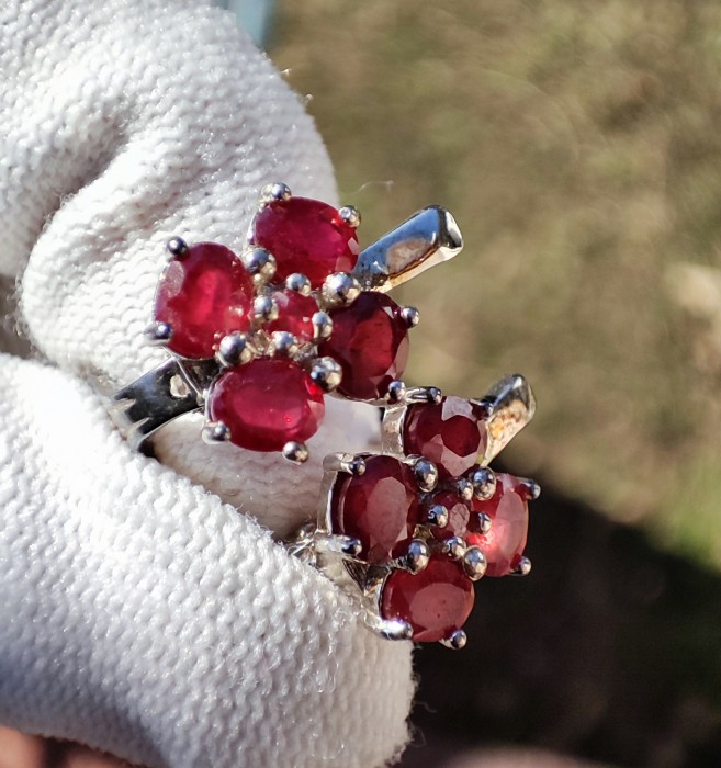 CERCEI ARGINT CU RUBIN NATURAL , FARA TRATAMENT, OVAL 5 X 4 MM DE ORIGINE MADAGASCAR