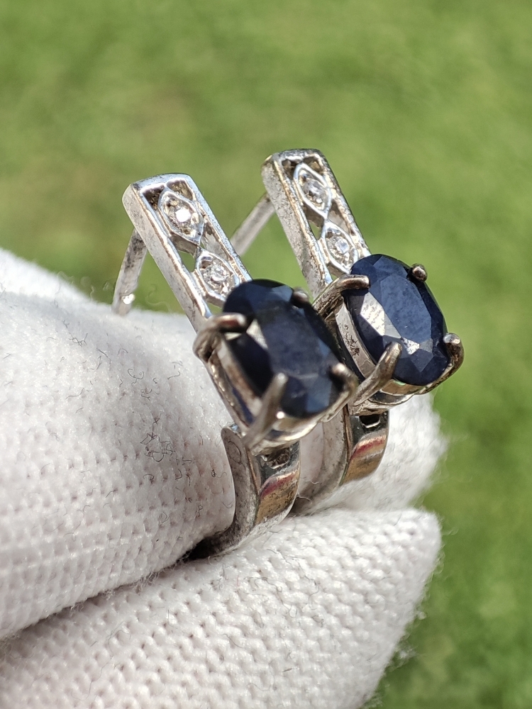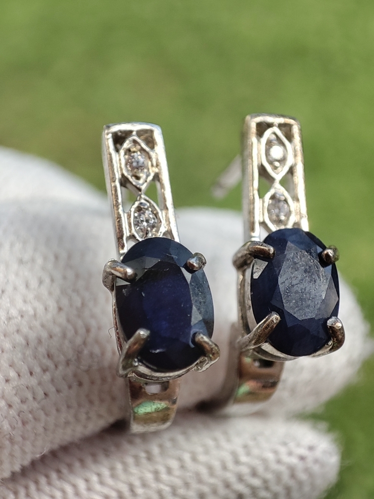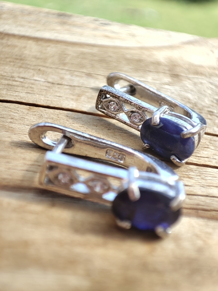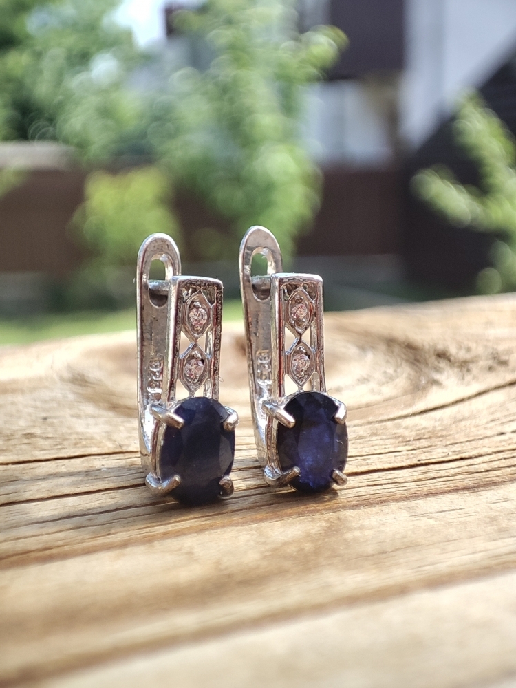 Cercei argint cu safir natural 7 x 5 mm