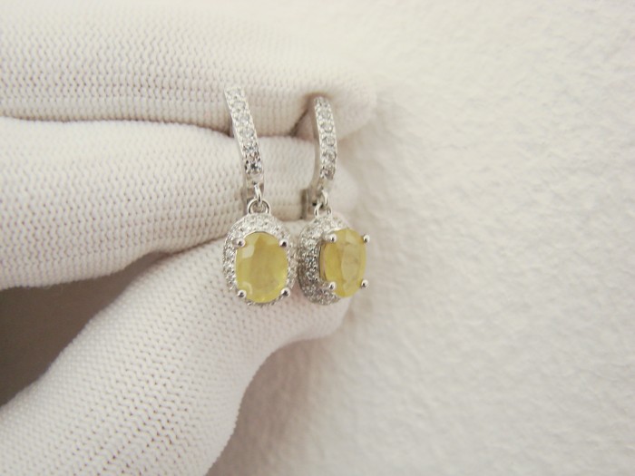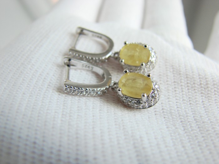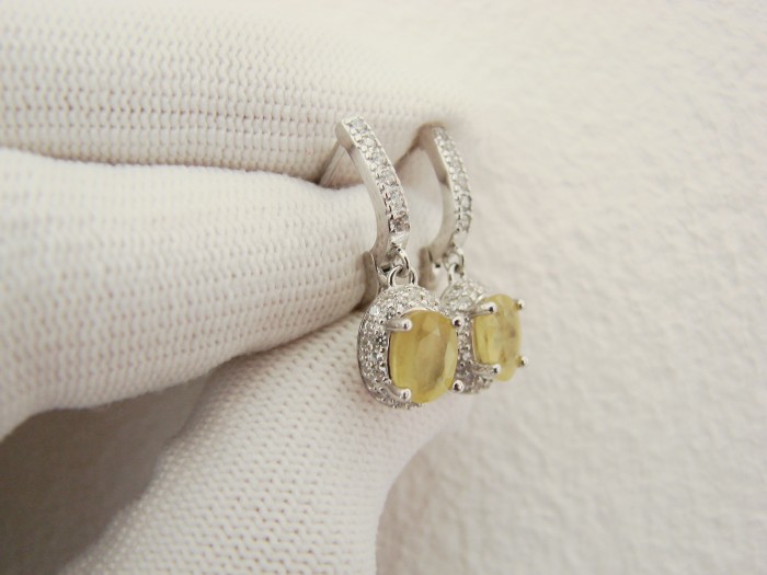CERCEI ARGINT CU SAFIR GALBEN NATURAL FATETAT 7 X 5 MM