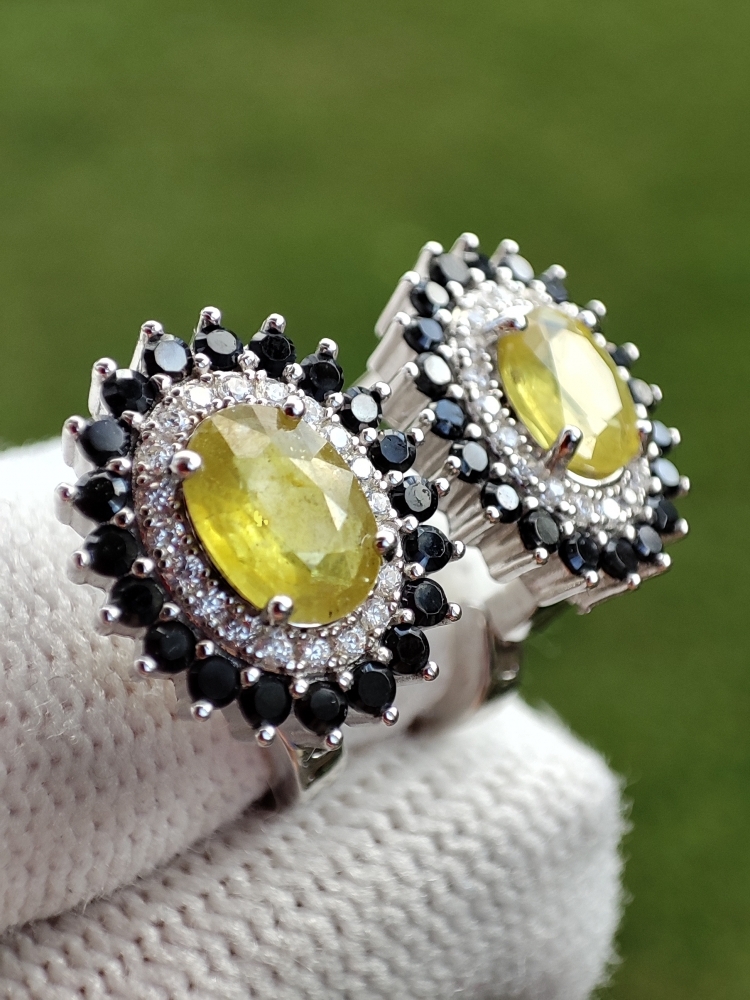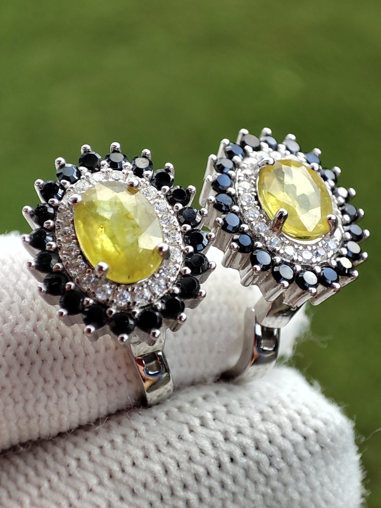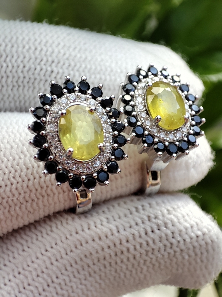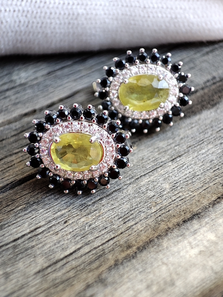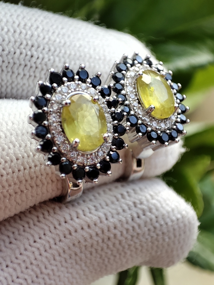 Cercei argint cu safir galben natural 7 x 5 mm