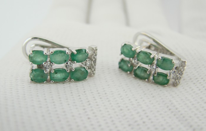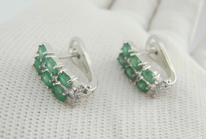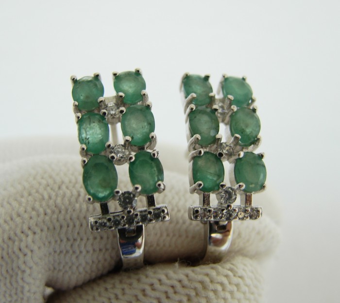 CERCEI ELEGANTI ARGINT CU SMARALDE NATURALE OVALE FATETATE 4 X 3 MM SI PIETRE CUBIC ZIRCONIA PENTRU O ELEGANTA APARTE