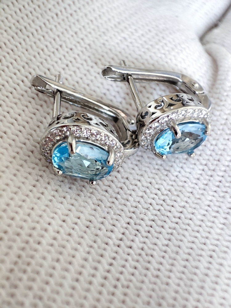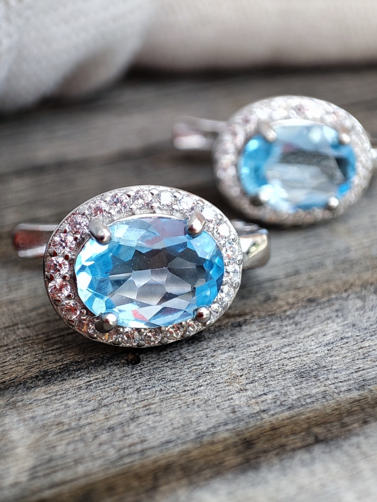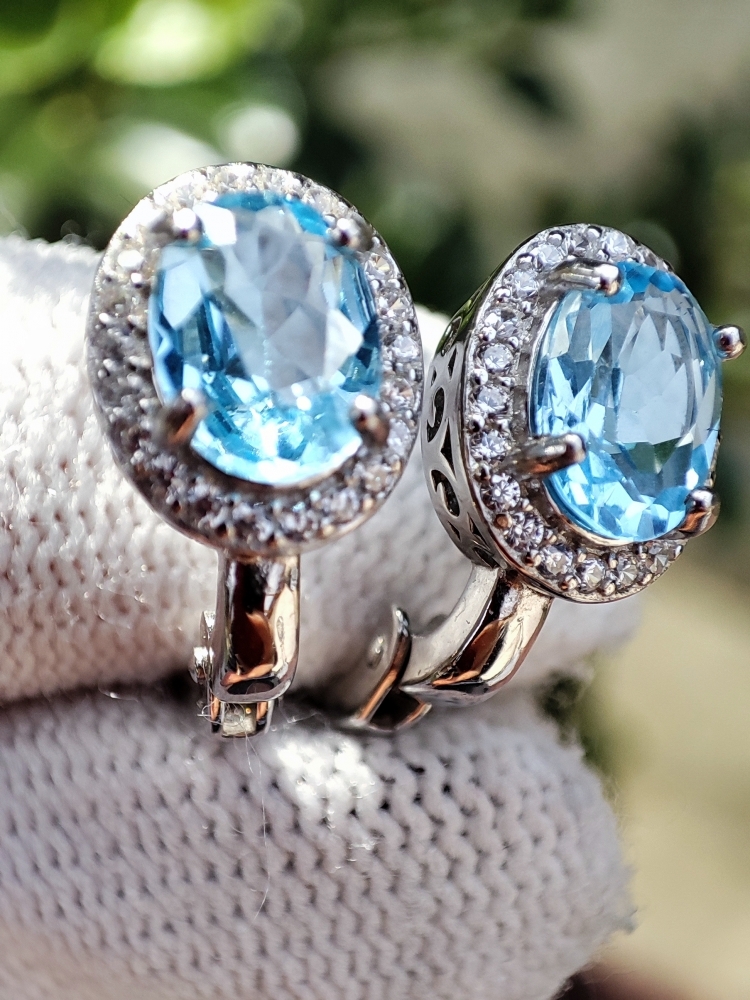Cercei argint cu topaz natural oval fatetat 8 x 6 mm