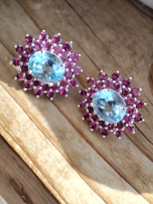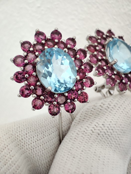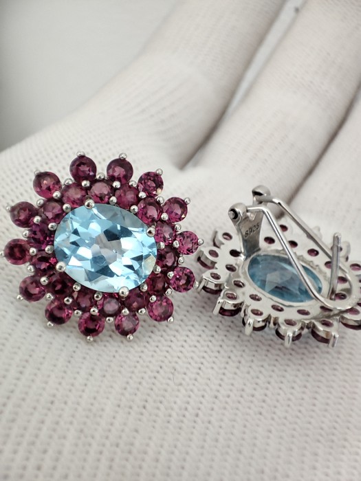 CERCEI MASTERPICE SUPERBI CU SKY BLUE TOPAZ NATURAL OVAL FATETAT 12 X 10 MM