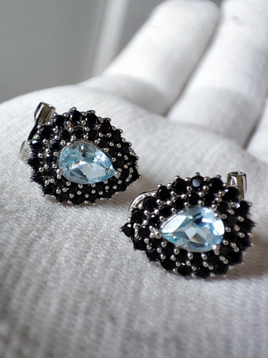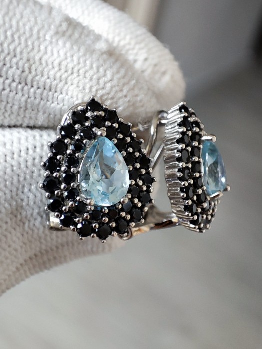 Cercei argint cu topaz sky blue naturala 7 x 5 mm,