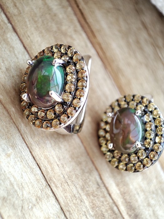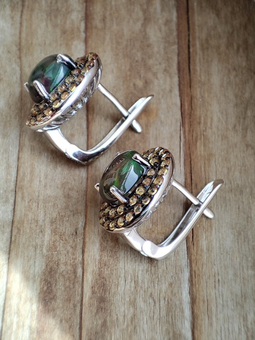 CERCEI ATRACTIVI CU OPAL OVAL CABOSHON 8 X 6 MM, NATURAL CU REFLEXIE FOARTE FRUMOASA