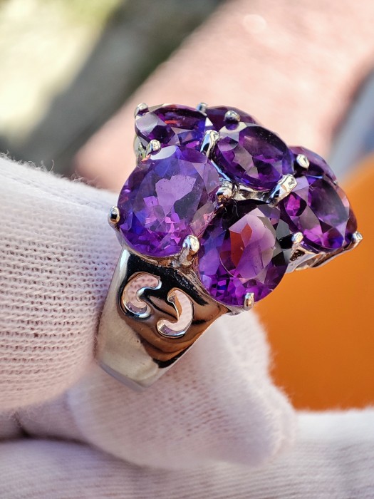 Inel argint cu ametist natural oval 9 x 7 mm