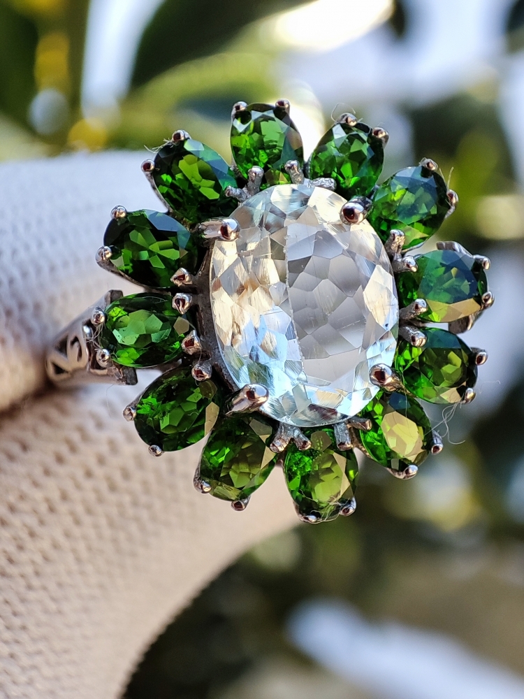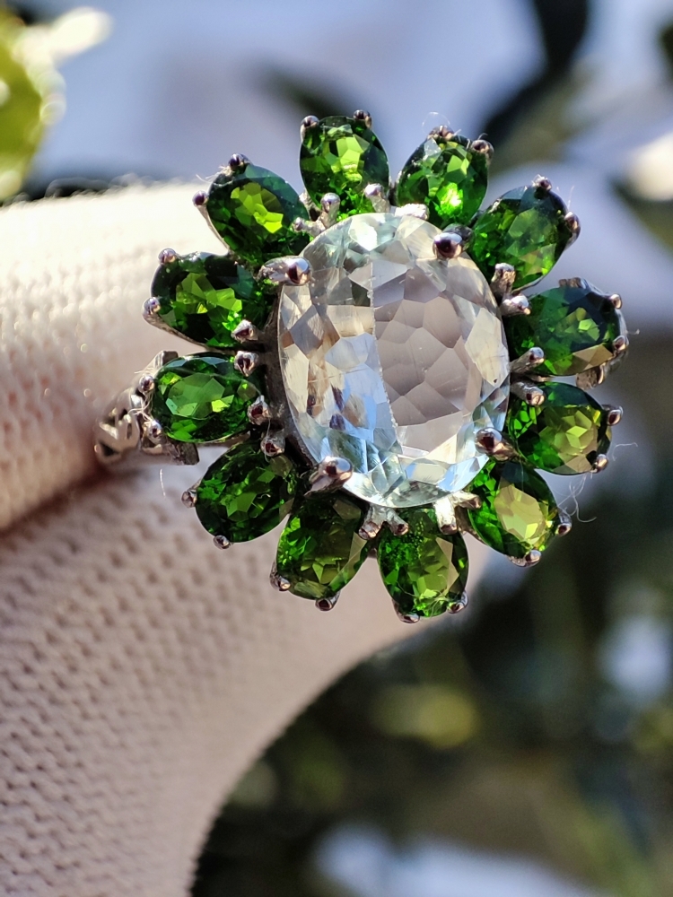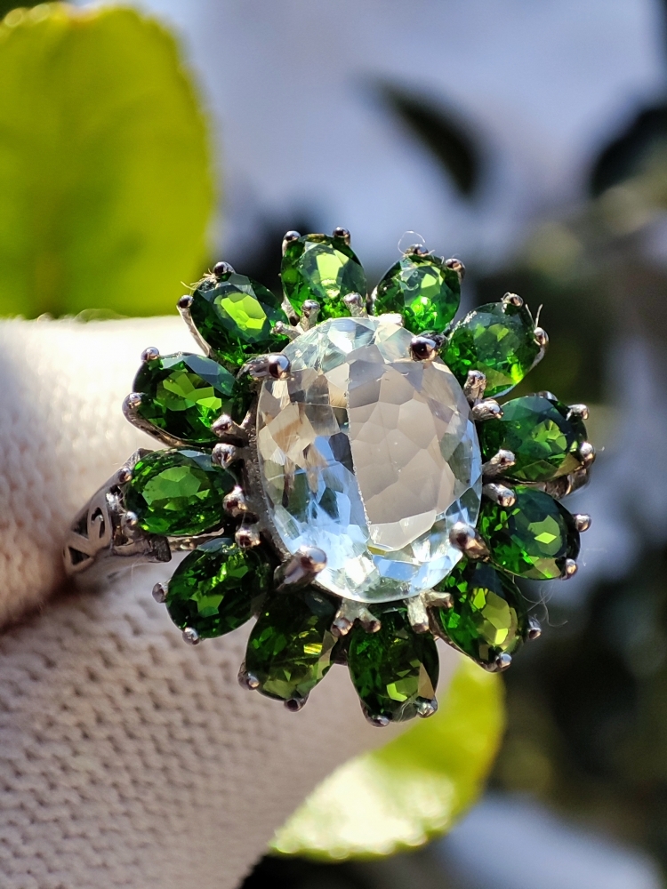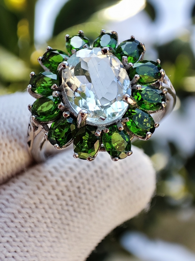 Inel superb cu aquamarin natural oval fatetat 10 x 8 mm