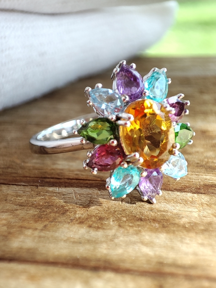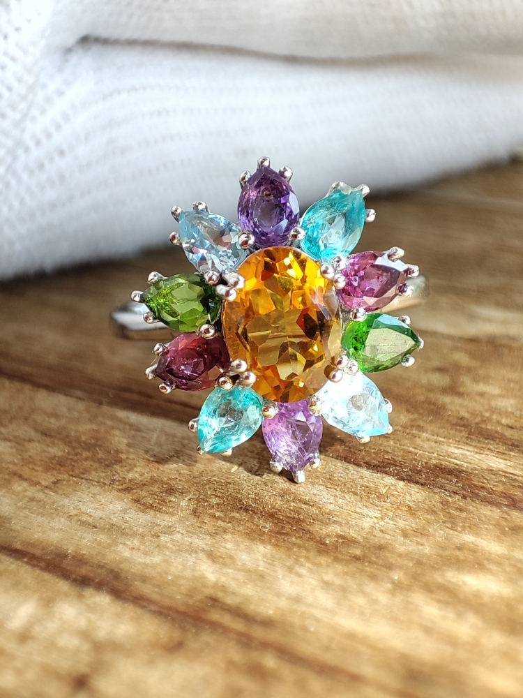 Inel argint superb cu citrin natural oval fatetat 8 x 6 mm