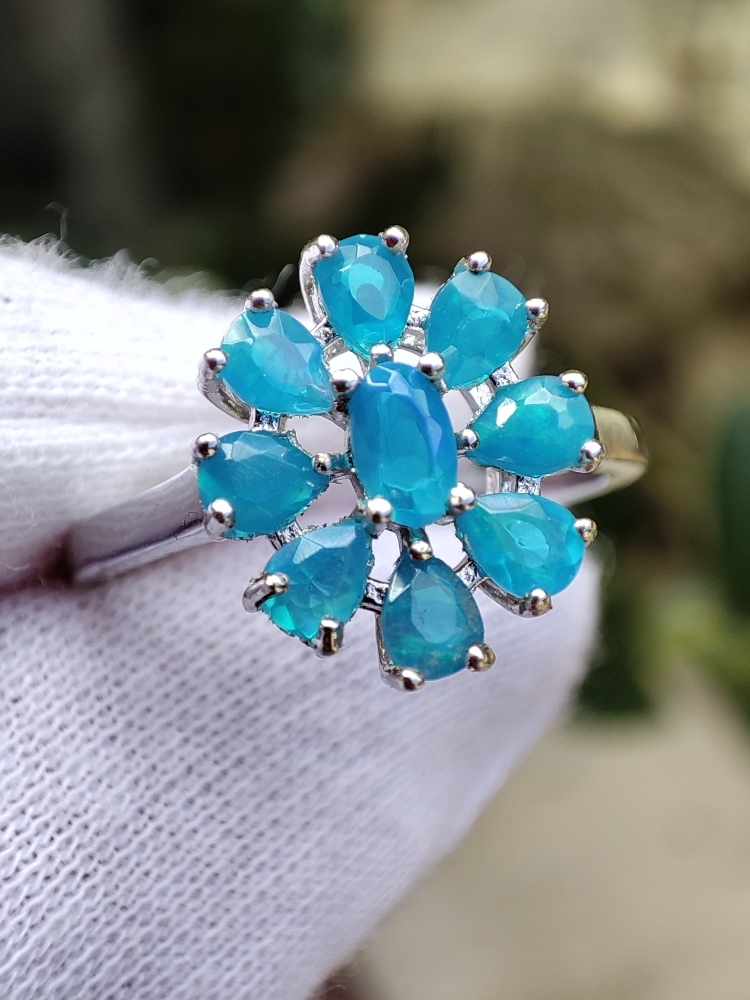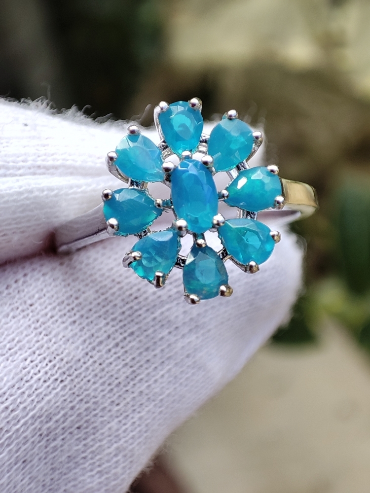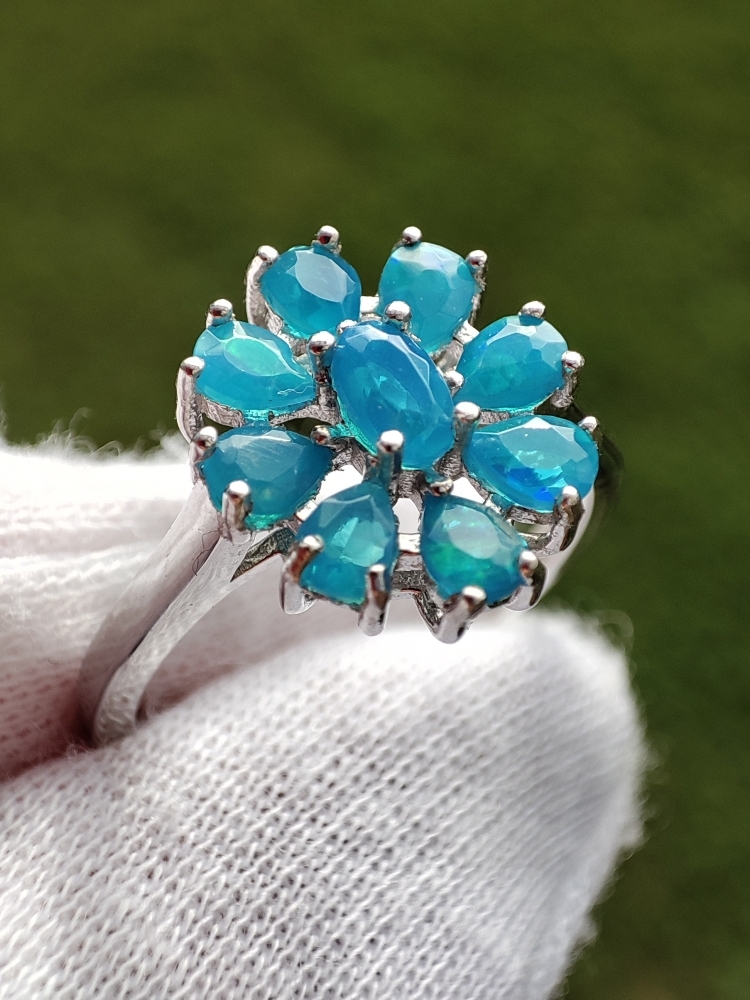 Inel argint cu opal albastru etiopian natural 5 x 3 mm