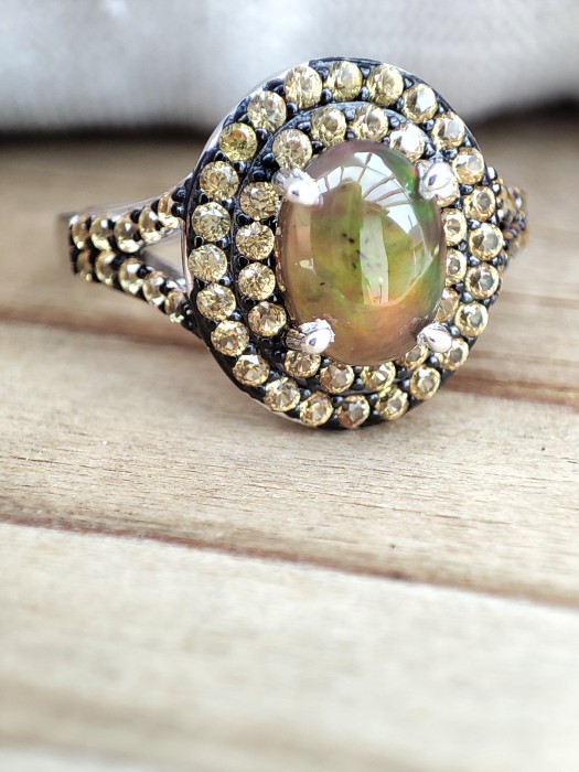 INEL ATRACTIV ARGINT CU OPAL NEGRU MULTICOLOR 8 X 6 MM, REFLEXIE FOARTE FRUMOASA