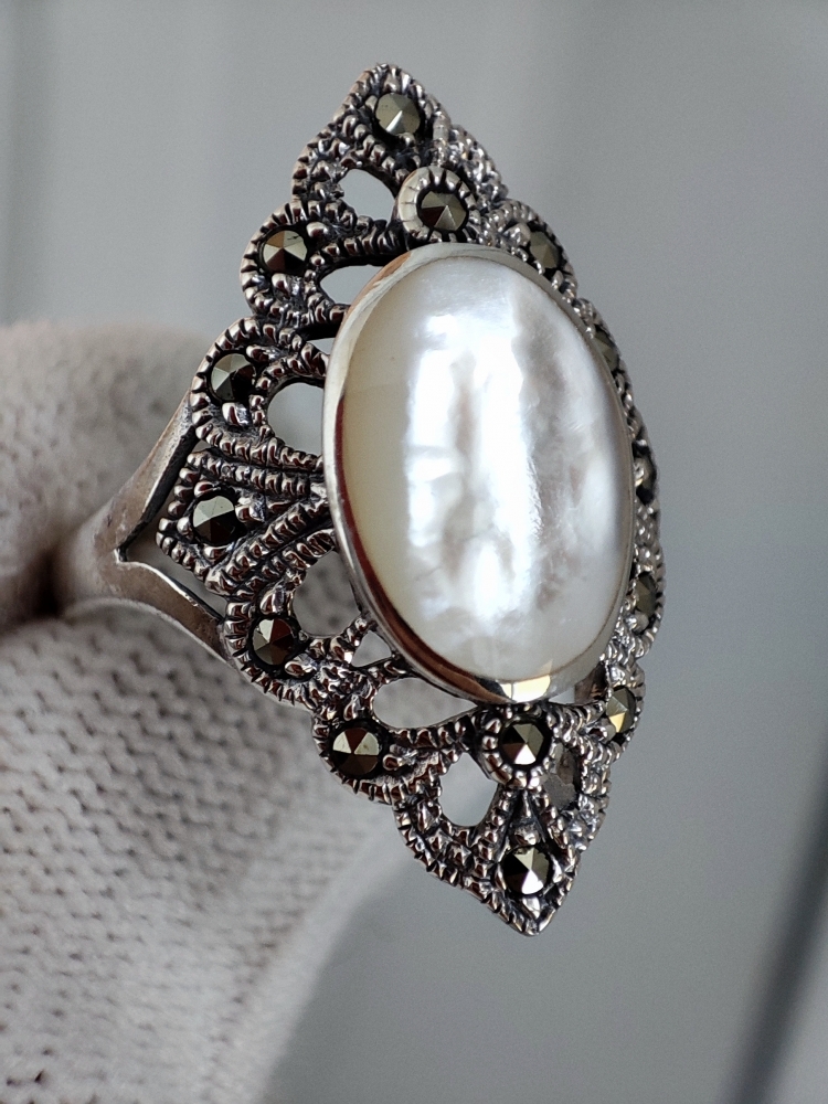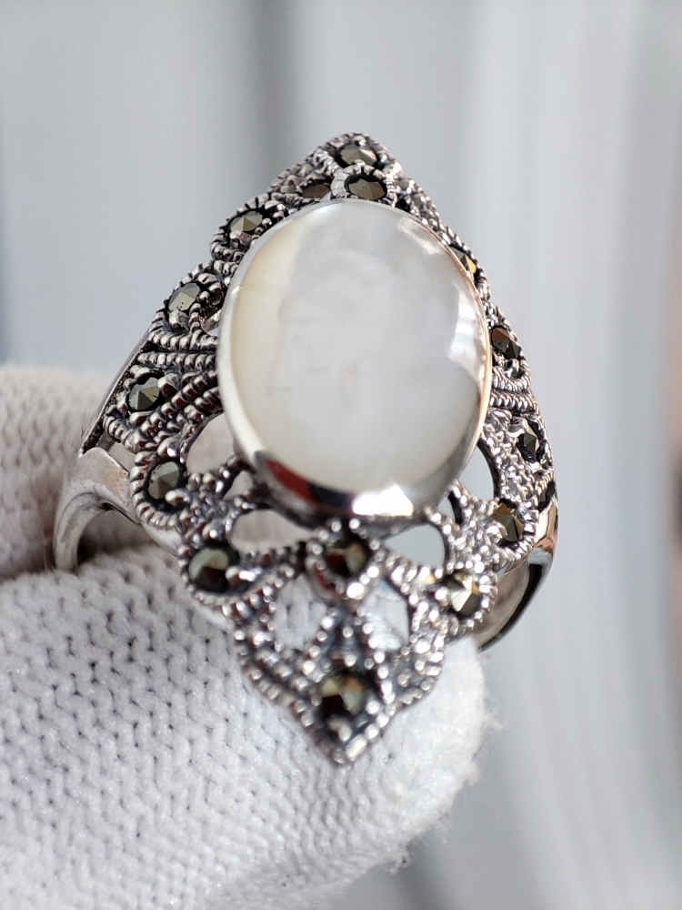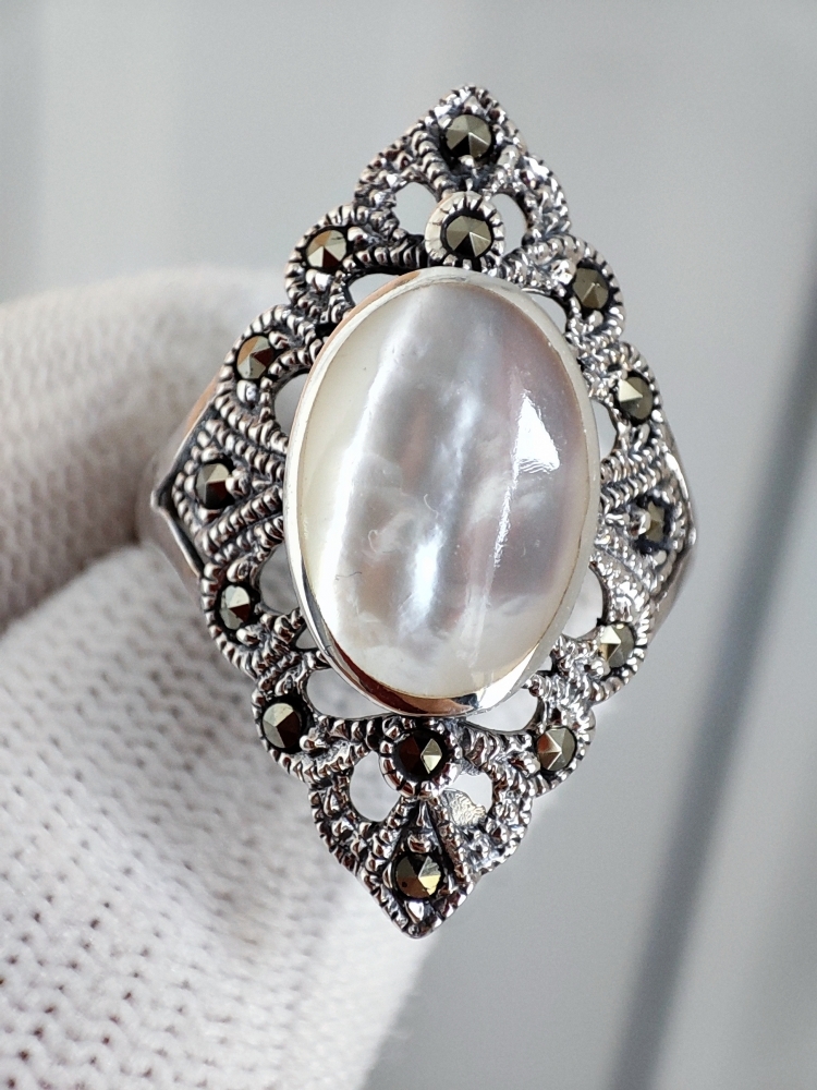 Inel argint cu scoica 12 x 8 mm si marcasite