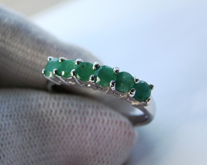 Inel finut cu smaralde rotunde naturale 3 mm