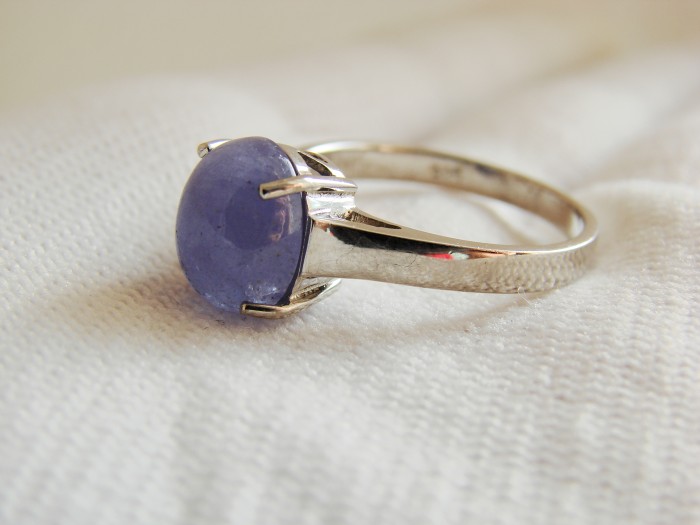 Inel cu tanzanit natural oval caboshon 8 x 10 mm