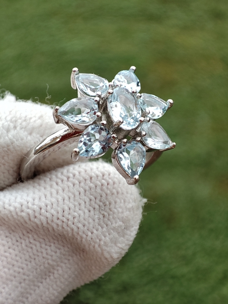 Inel argint cu sky blue topaz natural oval 6 x 4 mm si forma de lacrima 5 x 4mm