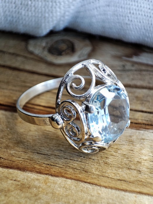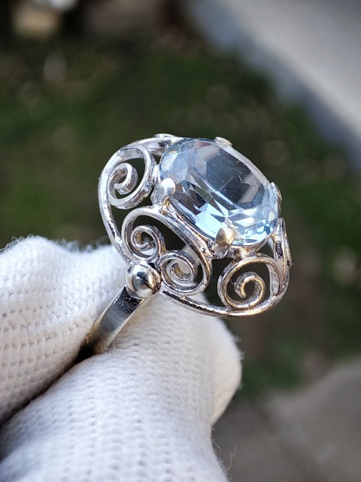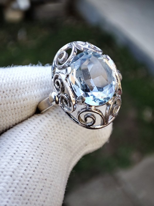 Inel argint antic, anii 1990 cu topaz london blue natural 11 x 9 mm