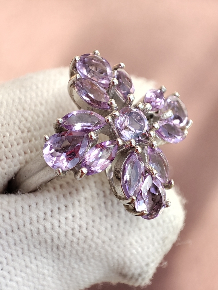 superb inel designer cu amethist natural montura argint 925