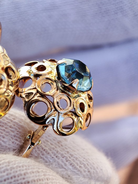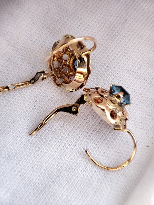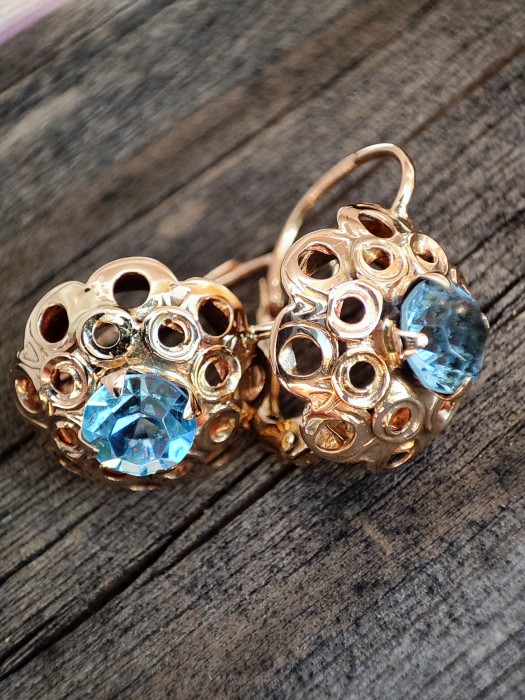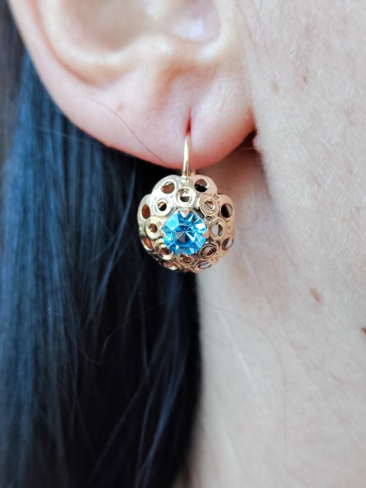 Cerceii din aur 14K Austria sunt realizati din cristal de stanca natural de culoare albastra, un accesoriu elegant si rafinat pentru orice ocazie.
