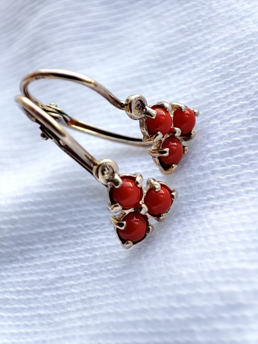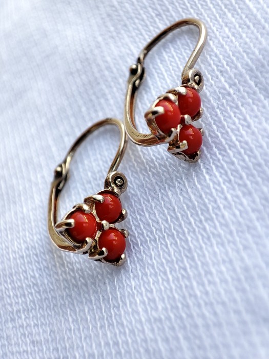 Cercei aur 14k copii fetite coral rosu in montura