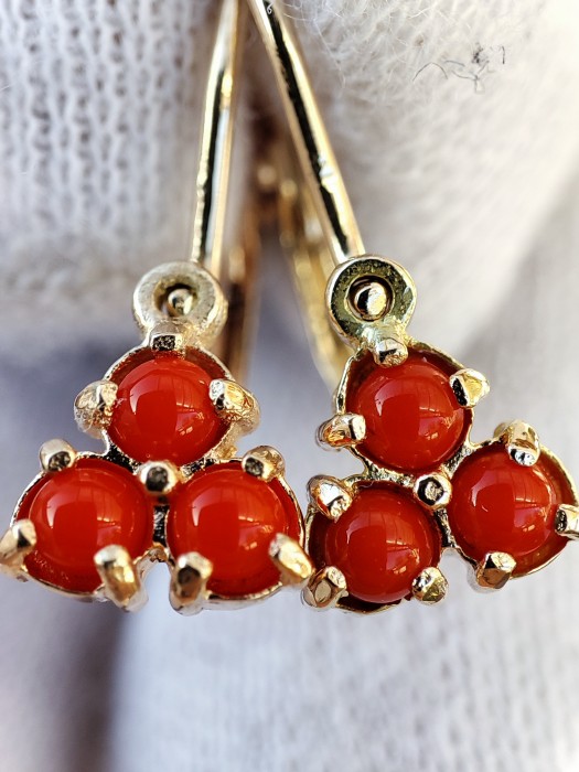 Coral Rosu 3 perechi aur 14k 1.1g.