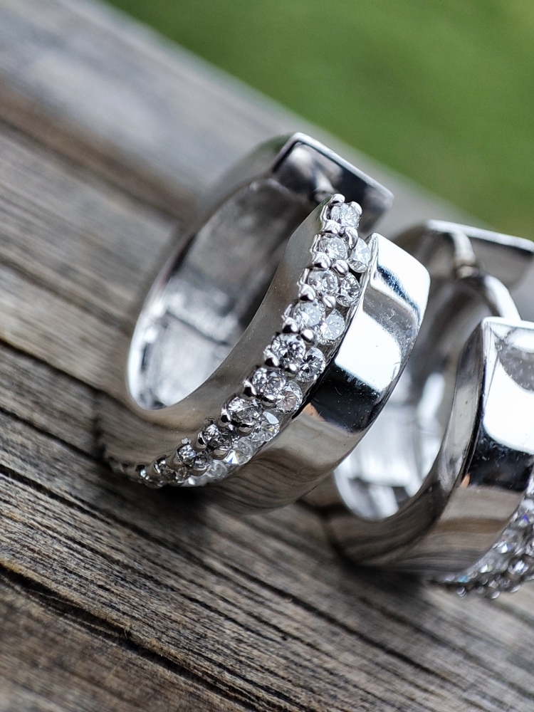 Aur alb 14k gramaj 6.24g. Diametru 15mm si Latime 5.5mm