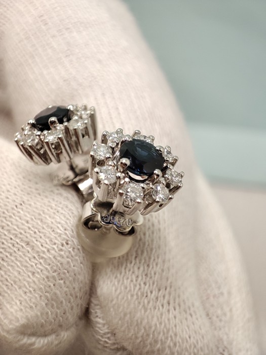safir natural rotund fatetare diamant de origine Sri Lanka 4.45mm / 4.61mm total 1ct. marcat pe cercei