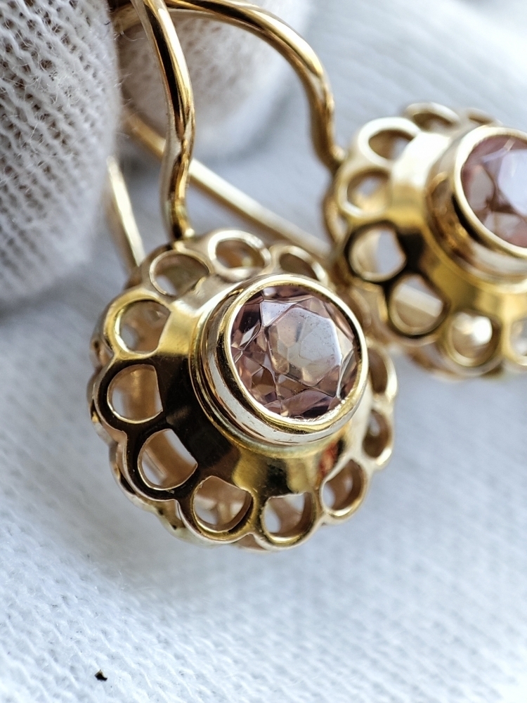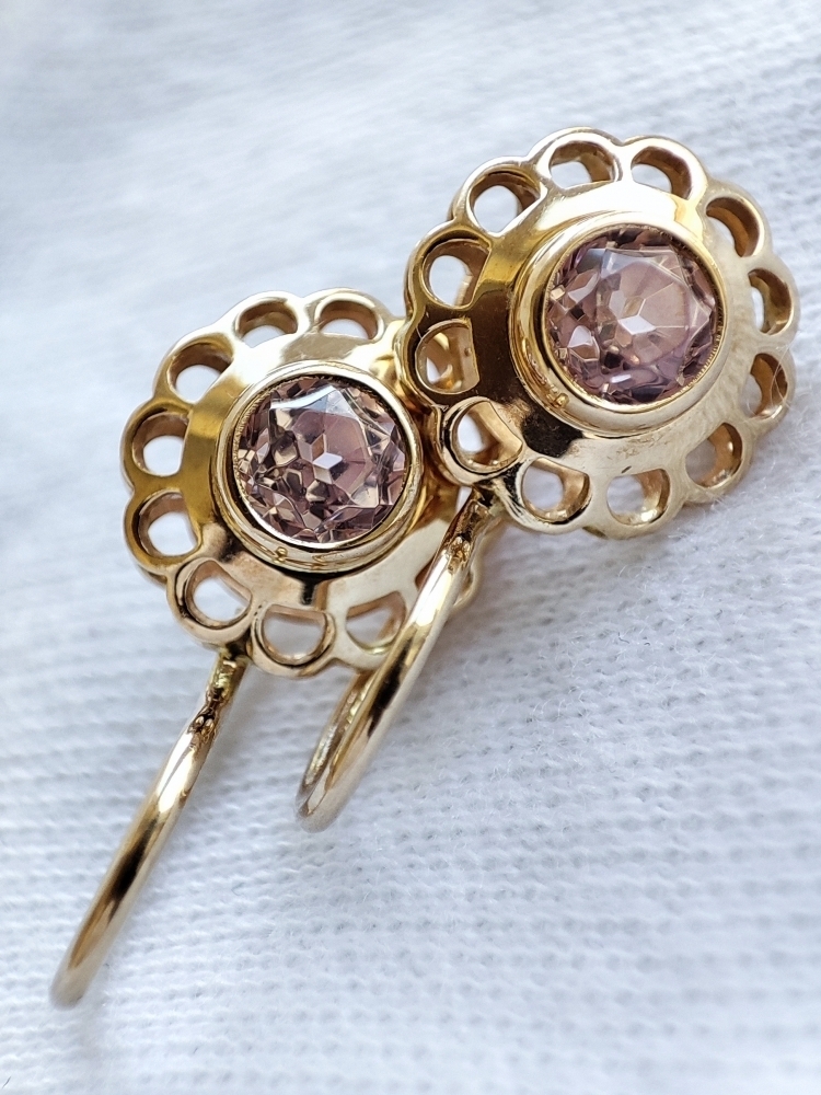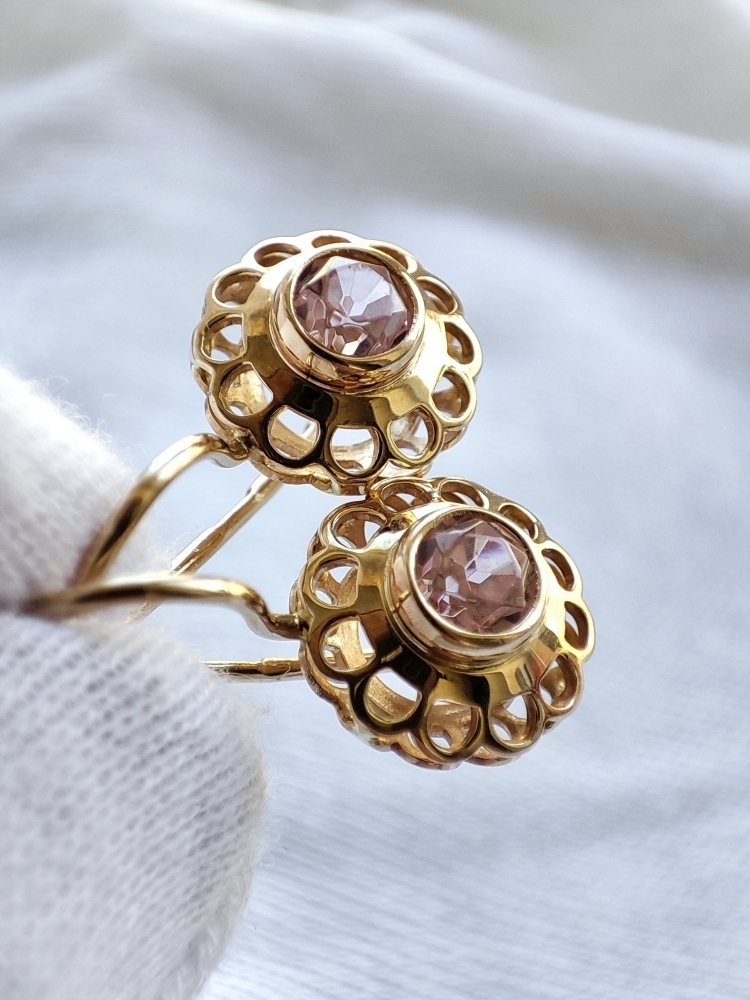 aur roz 14k gramaj 2.89g. diametru montura 1.1cm lungime 2.1cm
