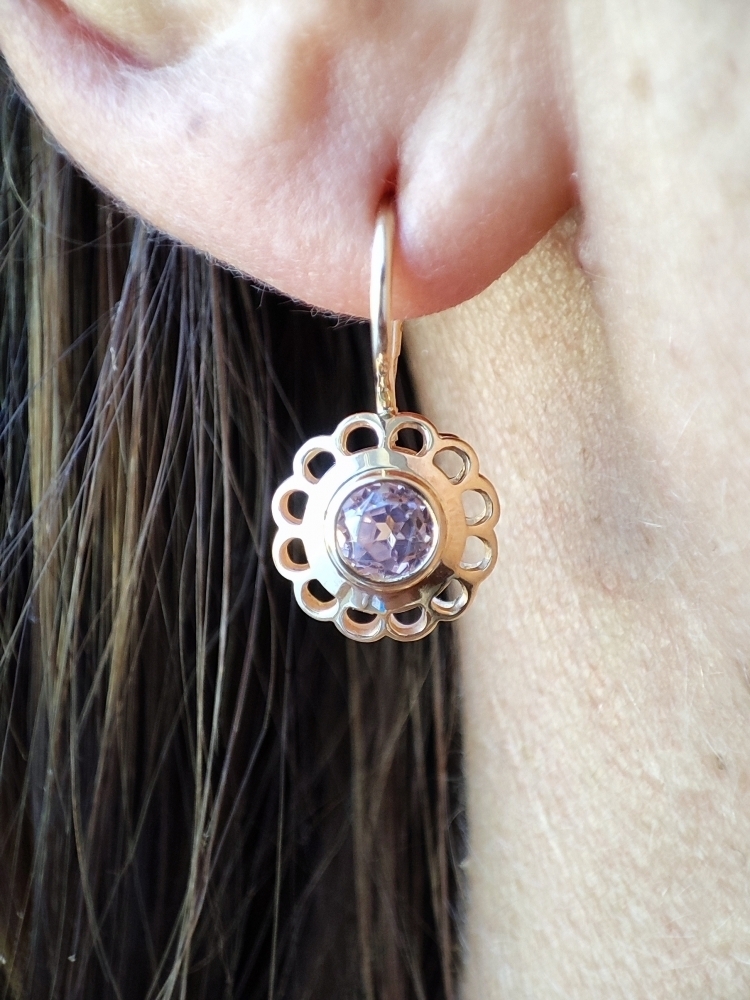 cercei traditional rusesti cu Lavender Lab. Created fatetare rotunda 4.45mm cc. 1.3ct.