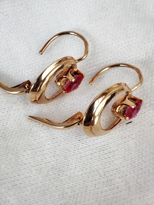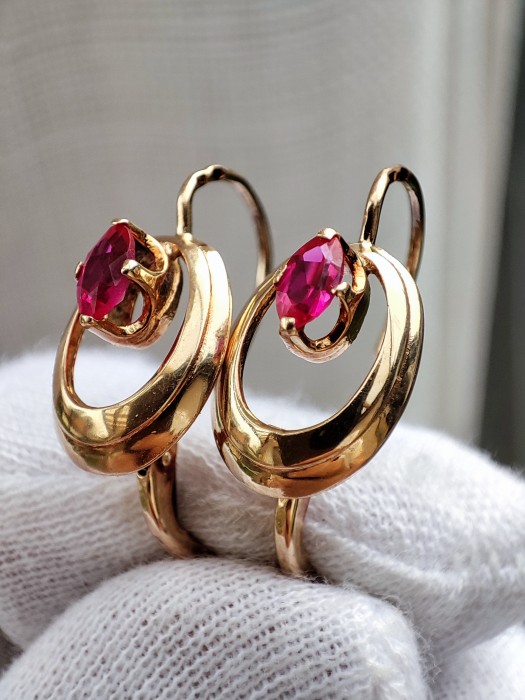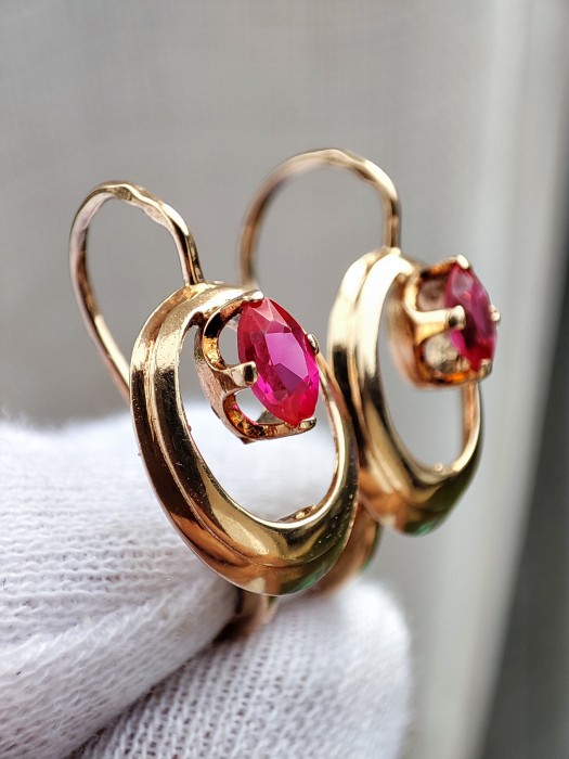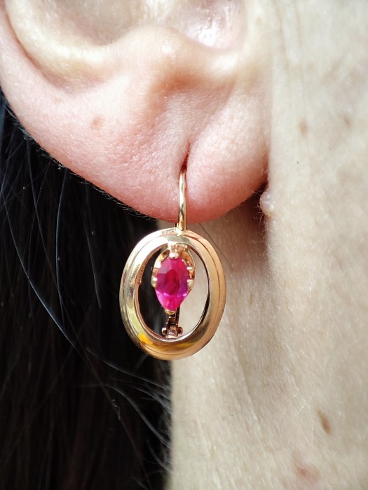 Cercei eleganți din aur 14k cu Rubelit, un accesoriu subtil și sofisticat, perfect pentru a completa o ținută elegantă.