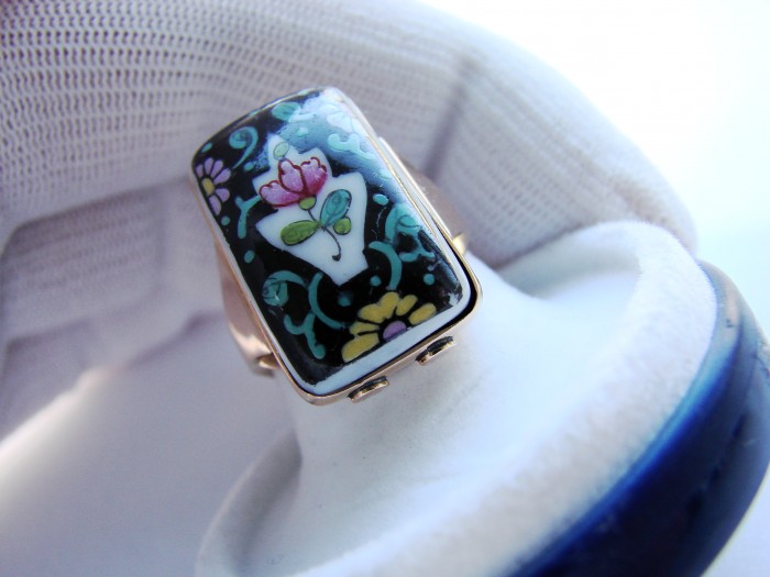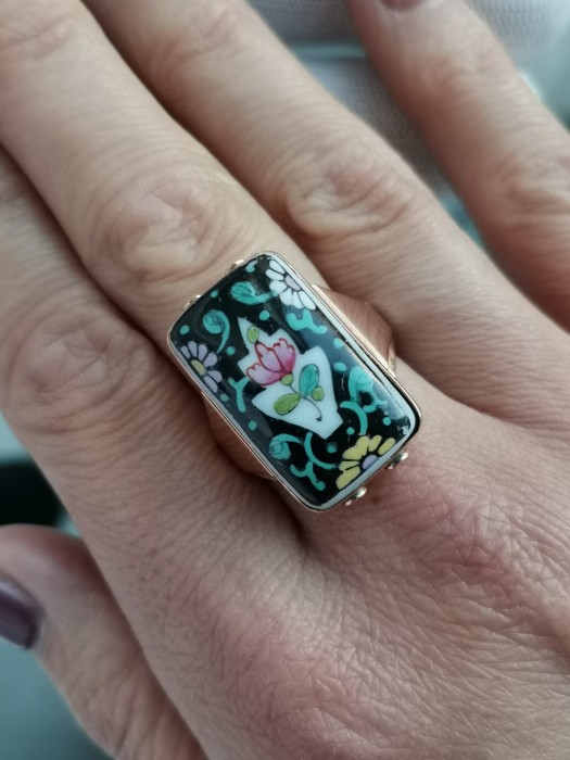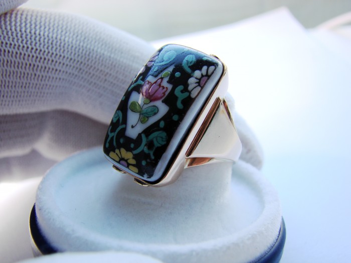 un inel impresionant lucrata in portelan fin cu tehnica de pictura