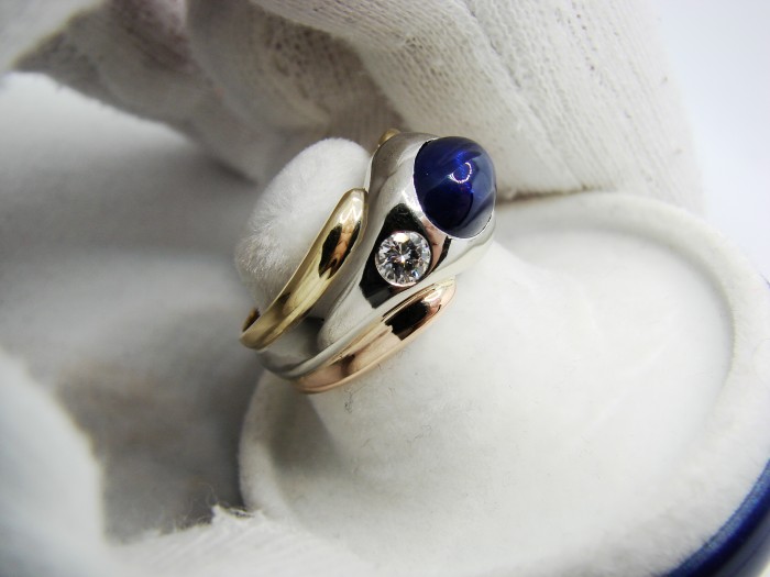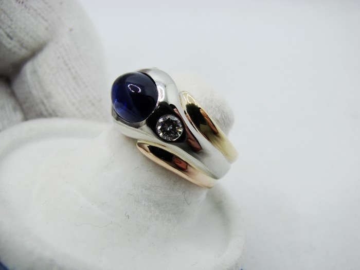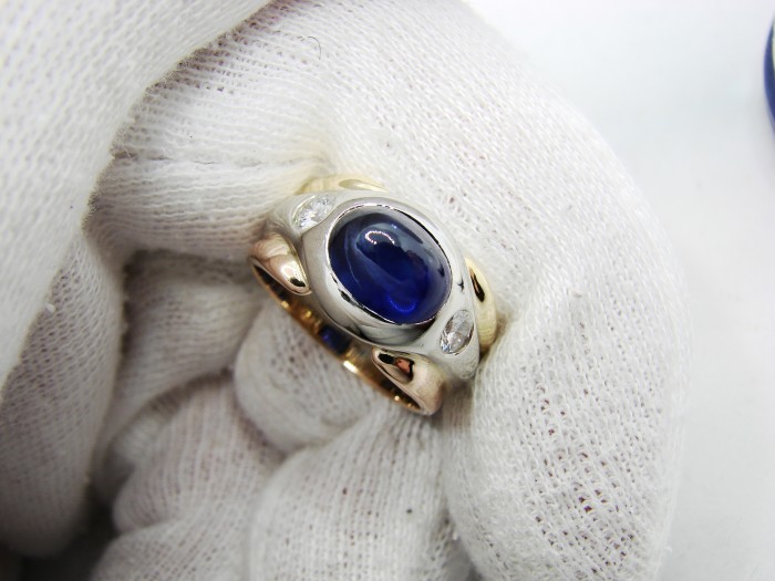 safir central cabochon inalt cu o culoare foarte frumoasa