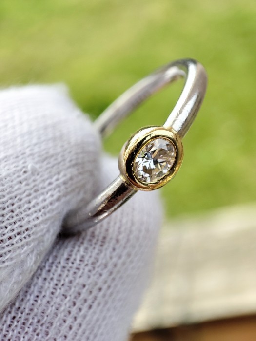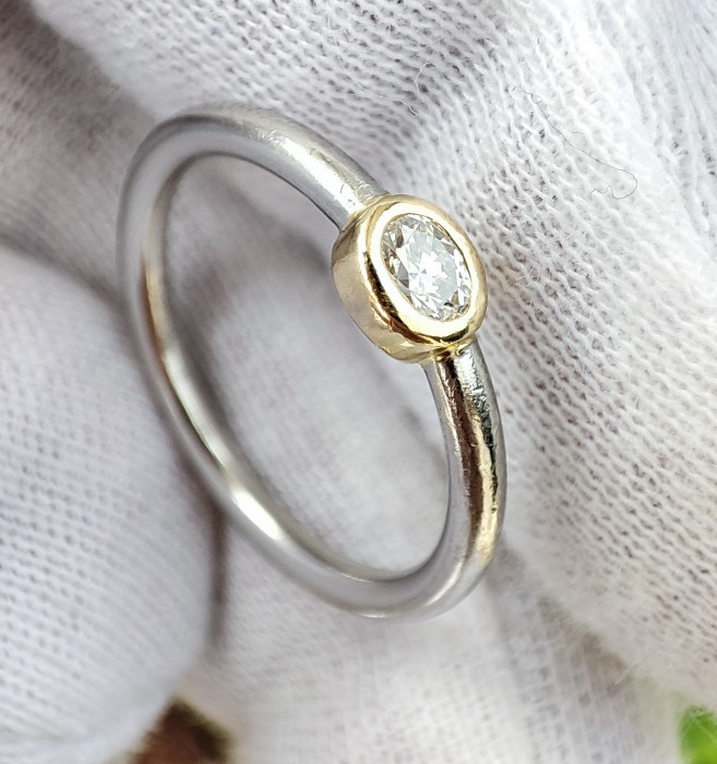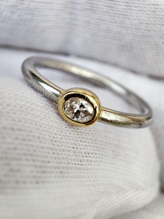 Diamant natural central oval 4x3mm cc. 0.22ct. Vs1 color H montura bezel aur 18k