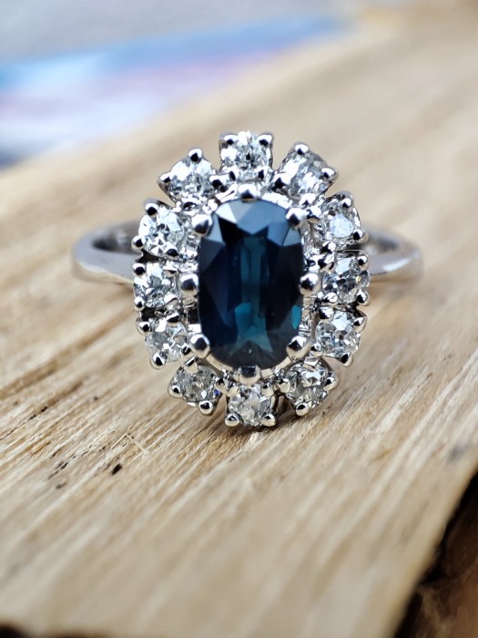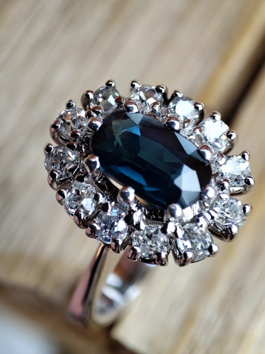Safir natural bicolor albastru - verde in anumite conditii de lumina