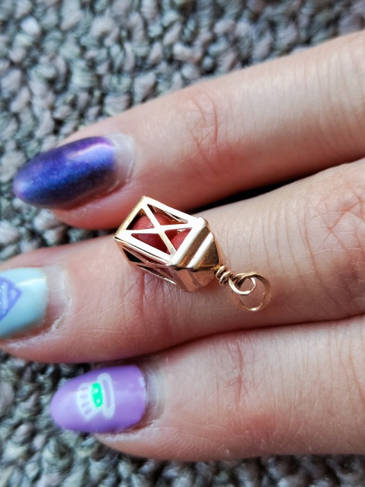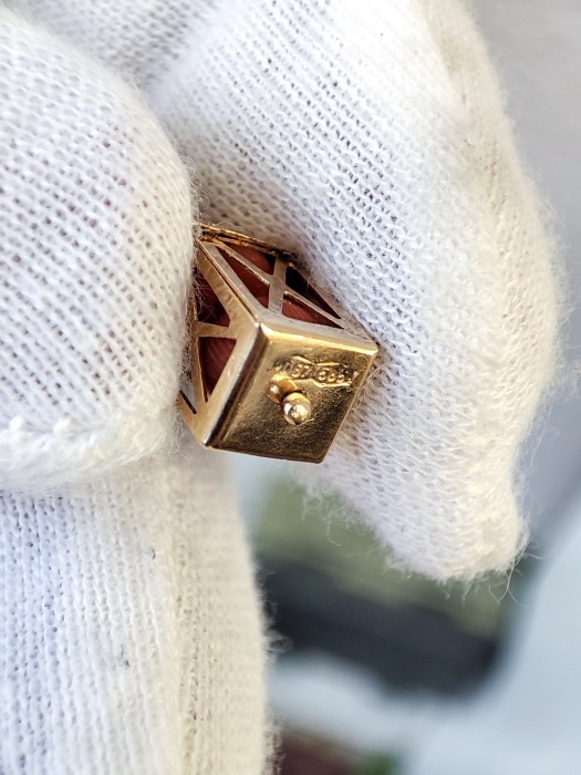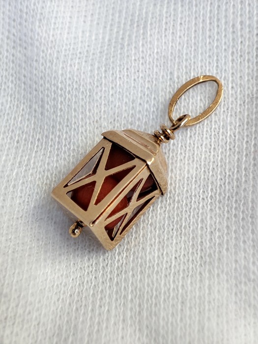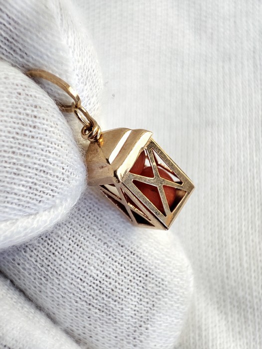 Pandantiv din aur 14k cu design de felinar, având un in interior 2 corali naturali. Unicat creat în Italia în anul 1967 de Designerul P.D.